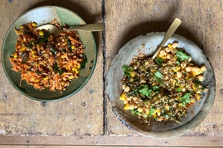 Apoorva Sripathi's quick and easy sundals using green lentils and chickpeas, plus a refreshing roasted peach and rosewater lassi.