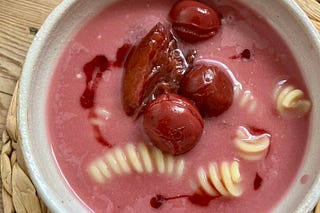 Marta Zboralska’s recipes for zupa owocowa (fruit soup) and naleśniki z serem (pancakes with sweet cheese filling). Photos by Georgia Rudd.