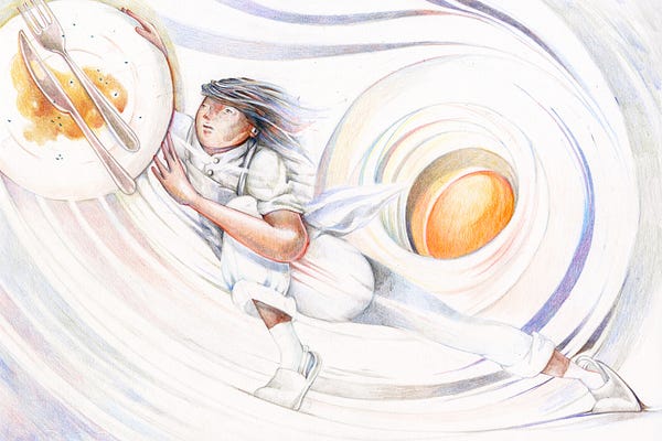 Mariam Abdel-Razek asks: why are chefs expected to love what they do? Illustration by Sing Yun Lee.
