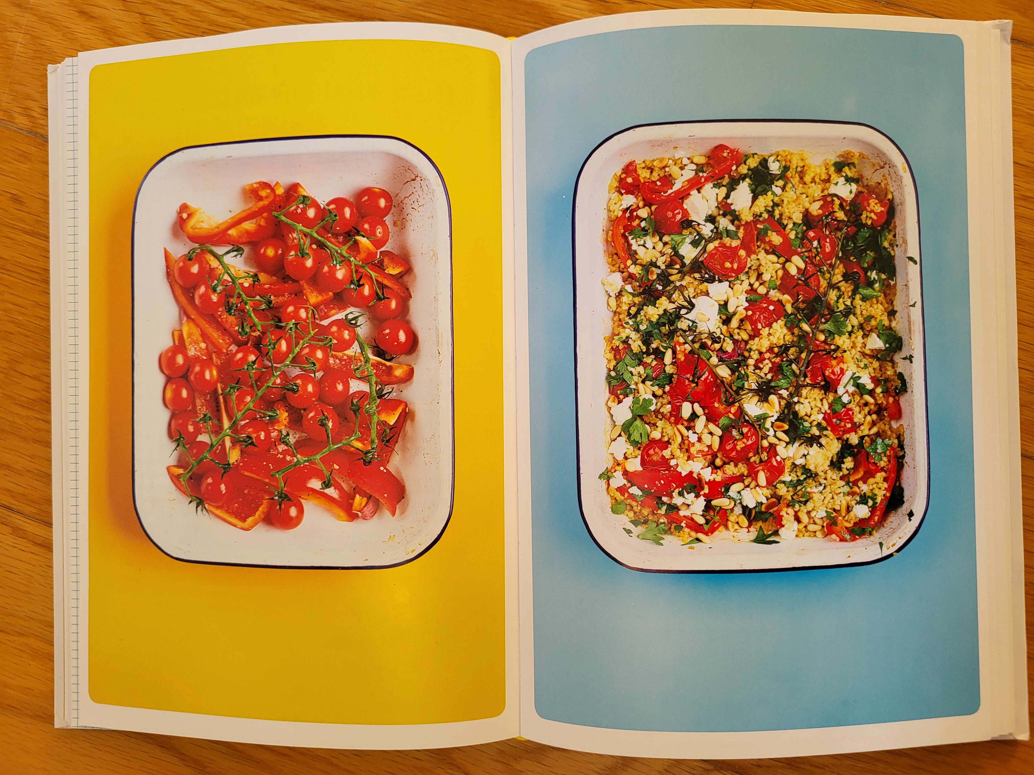 People have been cooking one-pot dinners for as long as they’ve had to bear the cross of washing up, but the aesthetics of Iyer’s books felt fresh. In a broad, flat roasting tin, everything pops: pasta dishes can be presented with expressionistic flair, tomatoes take a char, halloumi crisps and its edges deepen through shades of copper and taupe. David Loftus, one of the most prolific photographers in modern British food, created a world of tightly schematised visual overload: flatlay shots in which the tins become the picture plane. There’s no outside world here, no context, no light and shade, no fuss.