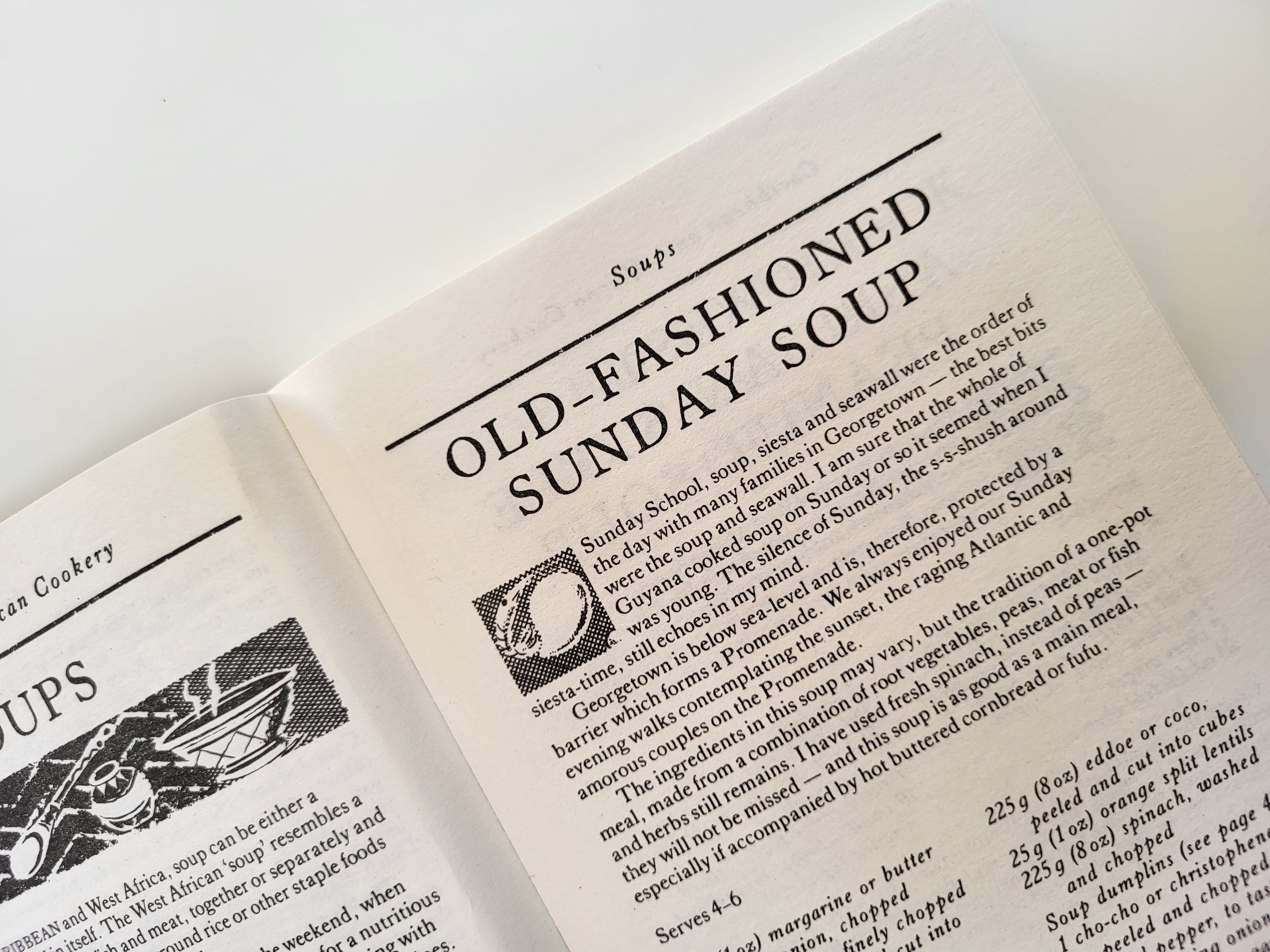 ‘I am sure that the whole of Guyana cooked soup on Sunday, or so it seemed when I was young,’ Grant begins in Caribbean and African Cookery. ‘The silence of Sunday, the s-s-shush around siesta time, still echoes in my mind.’ Born in Guyana, Grant had been fine-tuning her recipes for years, through a catering business and a co-operative restaurant in north London called Bambaya. Having run cooking classes, a cookbook was a natural next step. ‘I didn’t finish my teacher training’, she told me, ‘but I wanted to teach.’ And so she wrote.