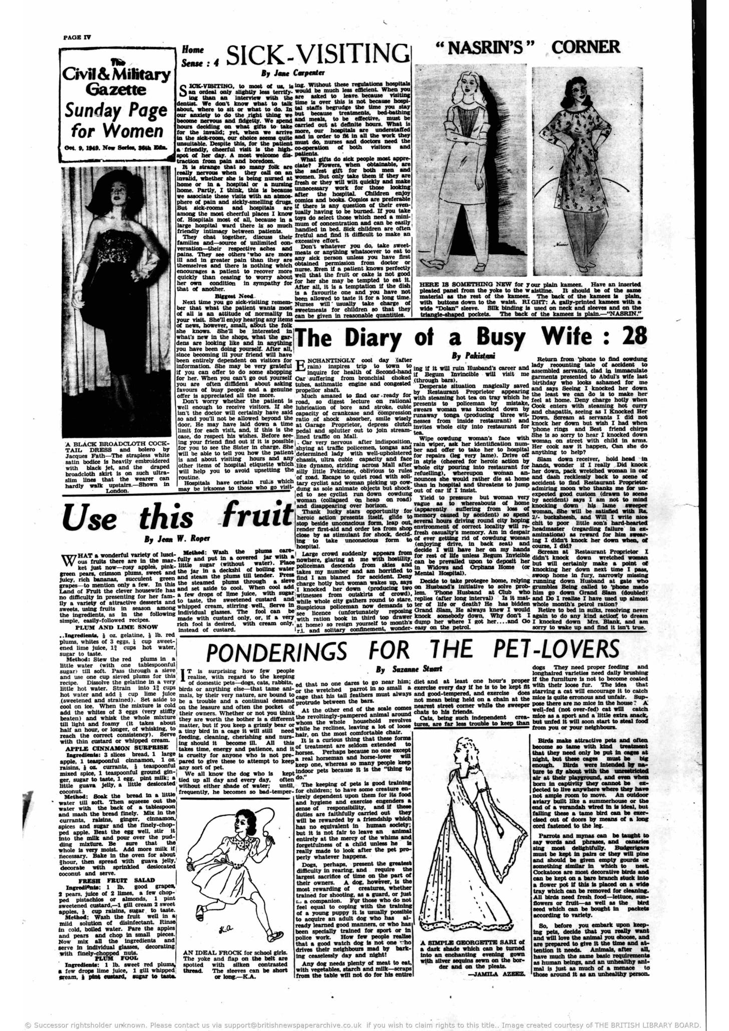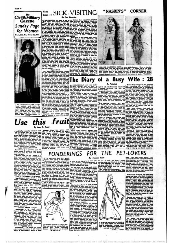 Throughout and after partition, the lives of memsahibs – who were both the audience and writers of the paper – seemed largely disconnected from the situation in the Punjab province at the time. A million people were killed, and around 15 million were displaced and in a state of destitution, living in camps across the newly created borders and using makeshift stoves to cook with limited rations. Amidst the carnage, the women’s page in the Gazette continued to run articles about fashion trends, embroidery patterns and recipes.
