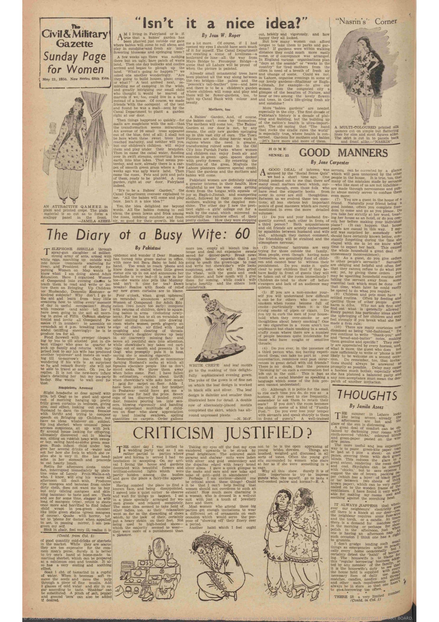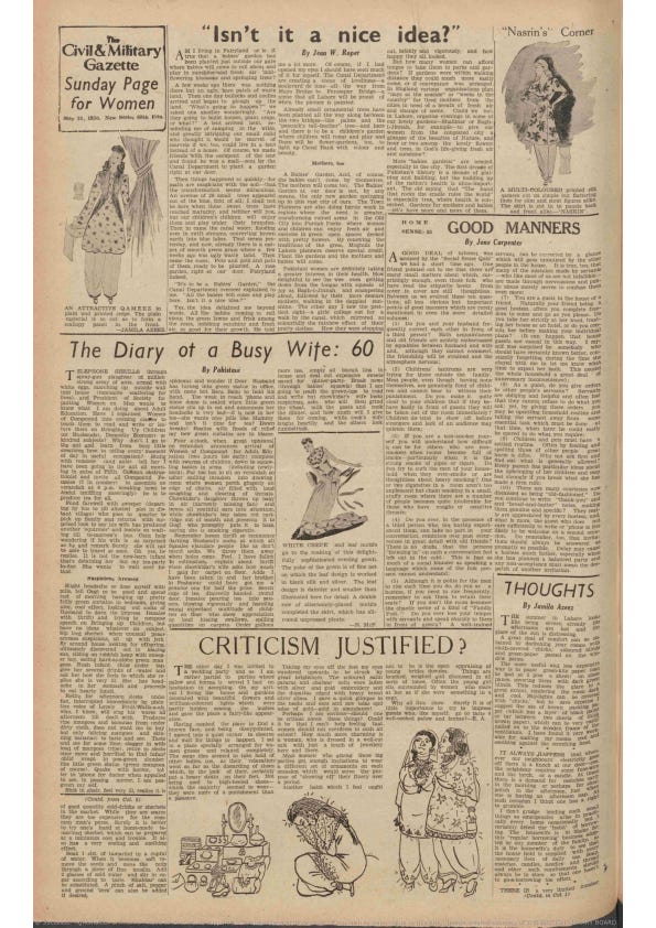 By following the women’s page of the Gazette through the archives, we can see how, in Pakistan, society began to engage with the idea that for (some) women, a world should exist beyond how to feed a sugar-obsessed child as the country moved from survival to aspiration. And while for Pakistani women of the upper class, these fantasies did come true, the reality is that many – privileged or not – are still navigating the same roadblocks they did back then.