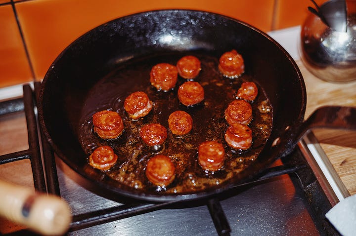 The following recipe emerges from these and other experiments with tradition. It’s a reimagined feijoada that leans into the English half of my background, drawing inspiration from bangers and mash.