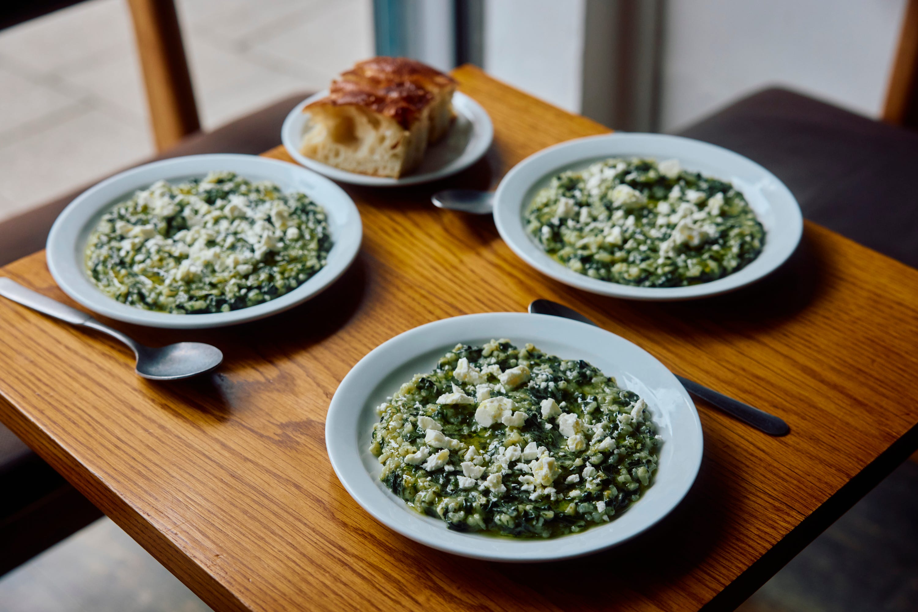 Spanakorizo is a total godsend during this mercurial hot–cold period before the truly exciting spring produce (asparagus, broad beans, courgettes) peaks, when you’re craving something fresh and zippy but also soulful and comforting. I’ve been serving it at Quality Wines around this time for the past few years now, with barrel-aged feta crumbled over the top, a good glug of olive oil and our crusty house focaccia. While this is enough to satisfy most, it does also work well as a garnish for roast chicken, grilled pork chops or steamed fish. I’ll leave you with one piece of advice: do not be stingy with the lemon.