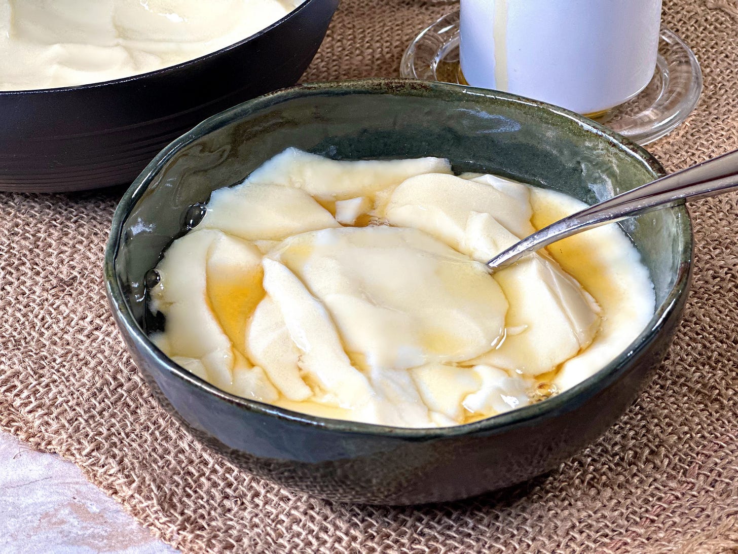 So, I adapted it. I found a way to preserve tofu fa’s silken integrity using agar-agar, a seaweed-derived setting agent rich in minerals and fibre. Using good-quality shop-bought soya milk and a little patience, I managed to create a version of my childhood favourite that is soft, nourishing, and deeply comforting – especially when served with a drizzle of homemade ginger syrup. It takes only fifteen minutes to prepare (plus a couple of hours to set), but the end result feels far more intricate.
