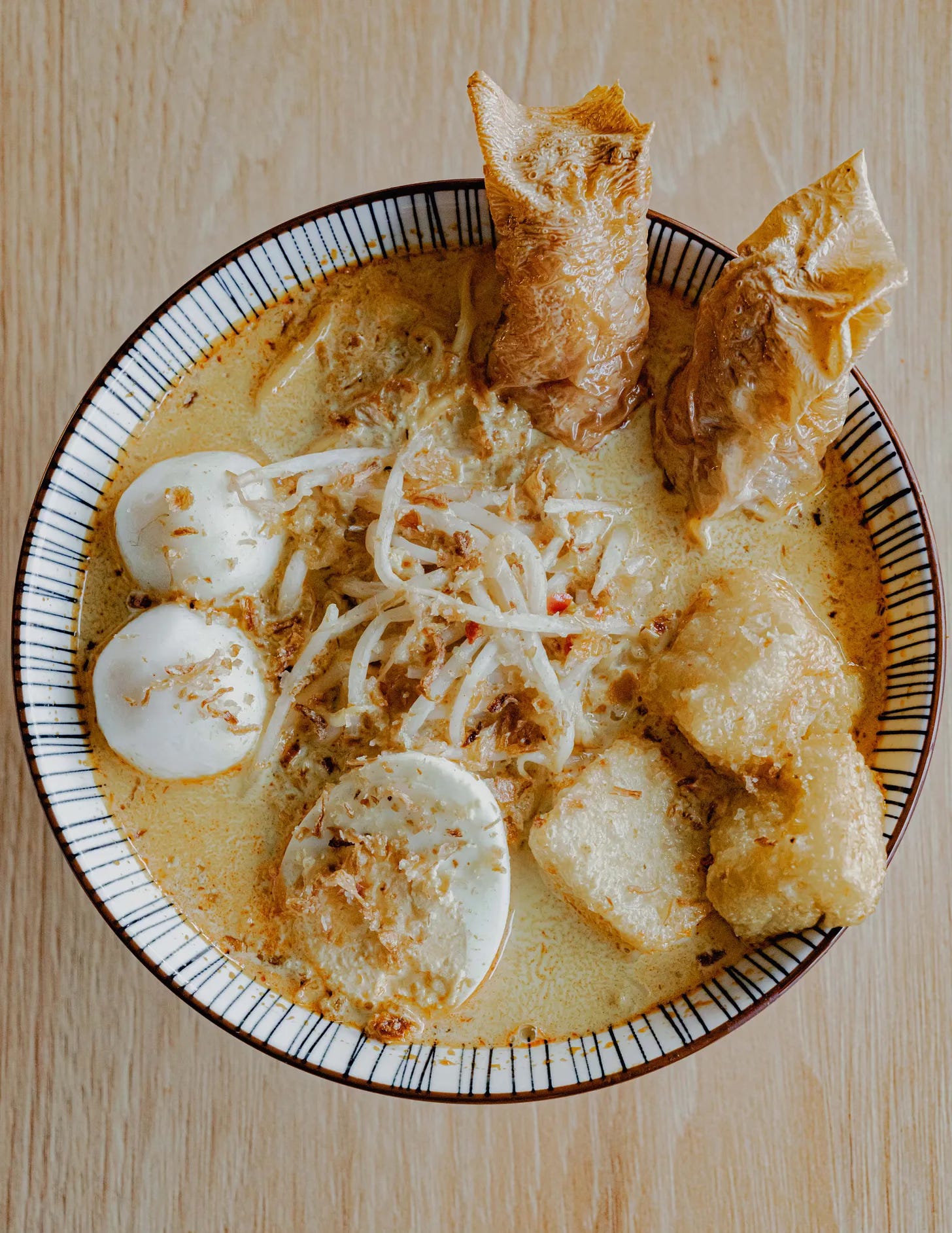 When Kelvin Chan and June Fan reopened their 14-seater cafe Little Nyonya in Sutton in 2023, almost exactly as it was in Quarry Bay 6000 miles away, they invented something new – not a diaspora restaurant, but a whole restaurant in diaspora. Little Nyonya may be the only restaurant in London operating on Hong Kong rules: a cramped kitchen putting out six dishes for around three hours a day, queues round the block, cash only. Its customers, mainly from the new Hongkonger community, aren’t looking for traditional HK comfort food but for what Little Nyonya was famous for back home: its elegant laksa, with broth the colour of virgin sand, either enriched with the marine funk from the heads of three prawns or by the QQ texture of glossy fish balls and homemade fish and pork beancurd rolls. I’ve often had the feeling eating here that, next to the gestalt of Little Nyonya’s laksa, other soup noodles are mere bowls of broth with toppings.