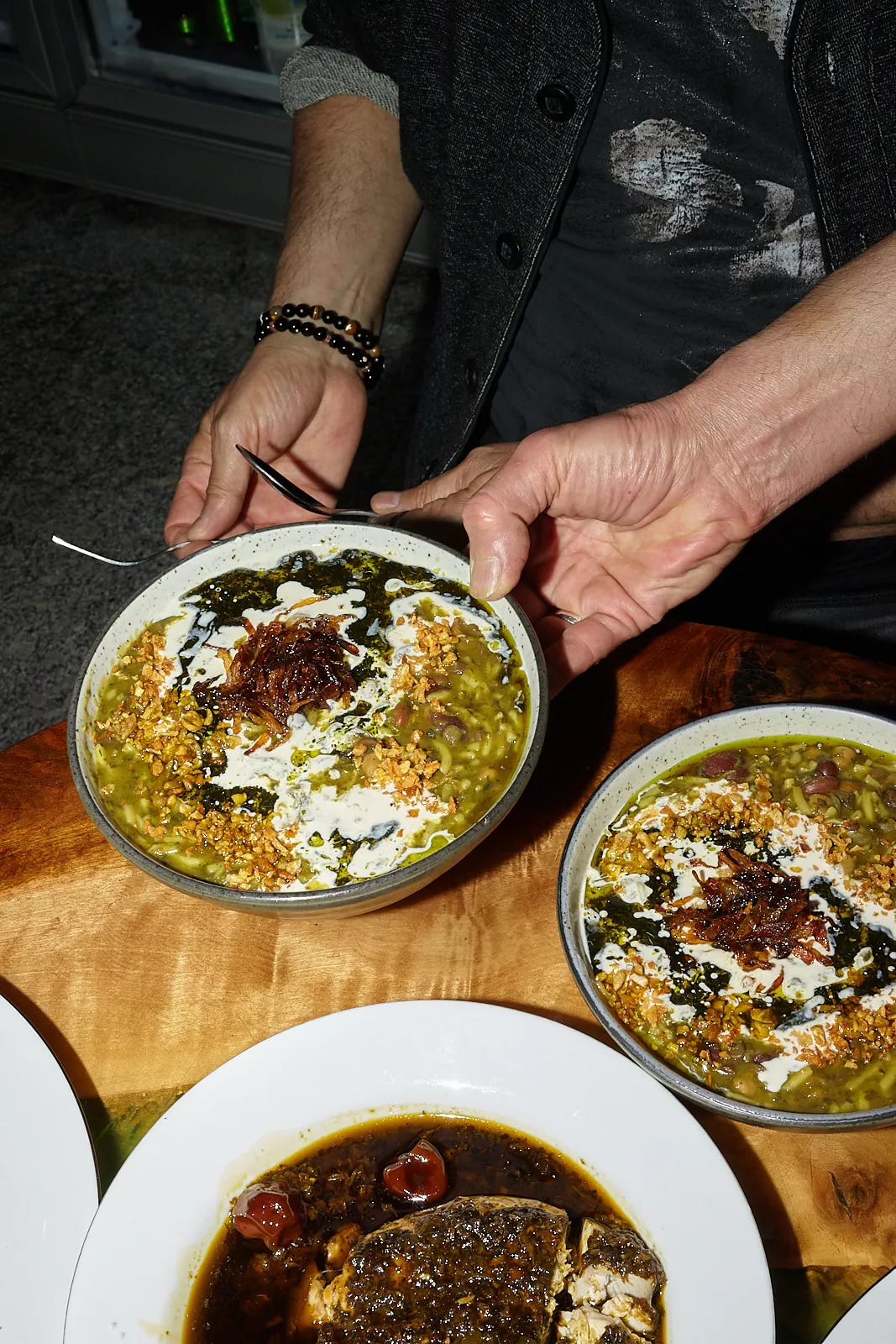 I once lamented to the LA Times’ restaurant critic Bill Addison about the lack of great khoresh – Iranian stews – in either of our cities’ restaurants, but that was before Saffron Kitchen miraculously opened in Finchley in 2024. The khoresh here rotate daily and read like a greatest hits of every province’s favourite dish. On lucky days you might find the viridian seafood stews of the south where owner Sam Hoseyni is from, like ghalieh meygoo, a Gordian knot of marine funk, sweetness and acidity; or northern dishes from Hoseyni’s wife Sima Valipour, including koofteh tabrizi, a Tabriz speciality of two huge rice-bound meatballs, each about the size of a baseball, stuffed with plum, barberries, fried onions and a single walnut. Every weekend, you’ll see older men with bald pates who all look like Salman Rushdie ordering bowls of kaleh pacheh, a lamb head soup most younger Iranians will tell you they can’t stomach. Make sure you finish with Saffron’s housemade bastani: saffron ice cream, frozen clotted cream and pistachio, a whole world in a scoop.