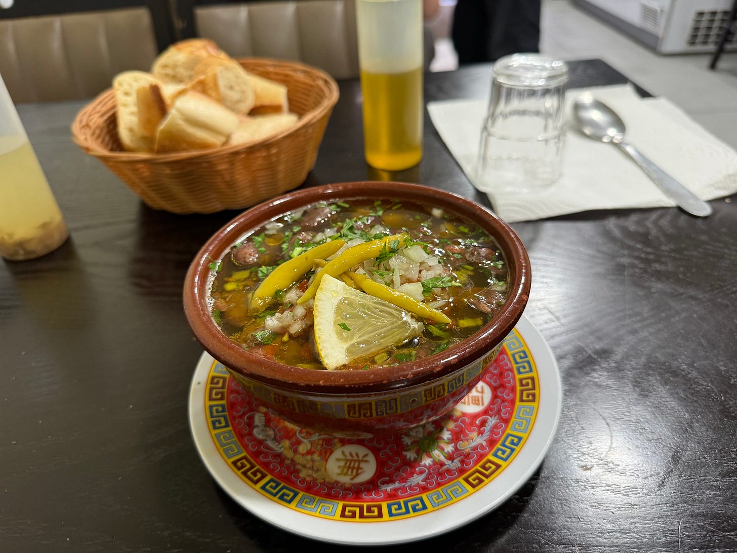 Zohir Berdouk learned to cook doubara soup from his grandmother while growing up in a village beside Djebel Chélia, Algeria’s second largest peak. In 2023, decades later, he opened Gourmand Dz – a pun referencing Dzayer, a local name for Algeria – in the Goutte d’Or, a neighbourhood in northern Paris renowned for wine production until the 19th century but today a stigmatised home to mostly North African communities. Berdouk’s tender, life-giving stew of chickpeas, tomatoes and broad beans infused with cumin and garlic, jolted with a slice of lemon and green chillies, and doused in a good slug of olive oil, is a chalkboard highlight. PY 10 Rue de Chartres, 75018