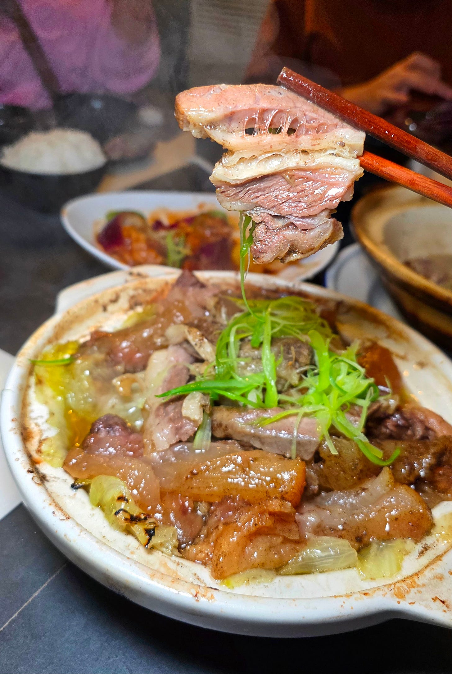 Golden Dragon opened in the last year, taking over from a sushi restaurant, and, unusually, specialises in traditional Hakka cuisine, which is rare to find anywhere in the UK. Chef Ben, who comes from Hong Kong, uses no MSG – instead long braises coax depth from tougher cuts of meat, layered aromatics come from fermented beans and preserved vegetables, and cooking techniques build flavour over hours. Each dish is shaped by patience and memory, and some orders require advance notice – a mark of their care. The slow-braised old duck is deeply savoury, the stewed herbal chicken with yellow wine soothing and nourishing, while the pickled mustard greens bring a sharp, tangy counterpoint, balancing out the richness of everything else.