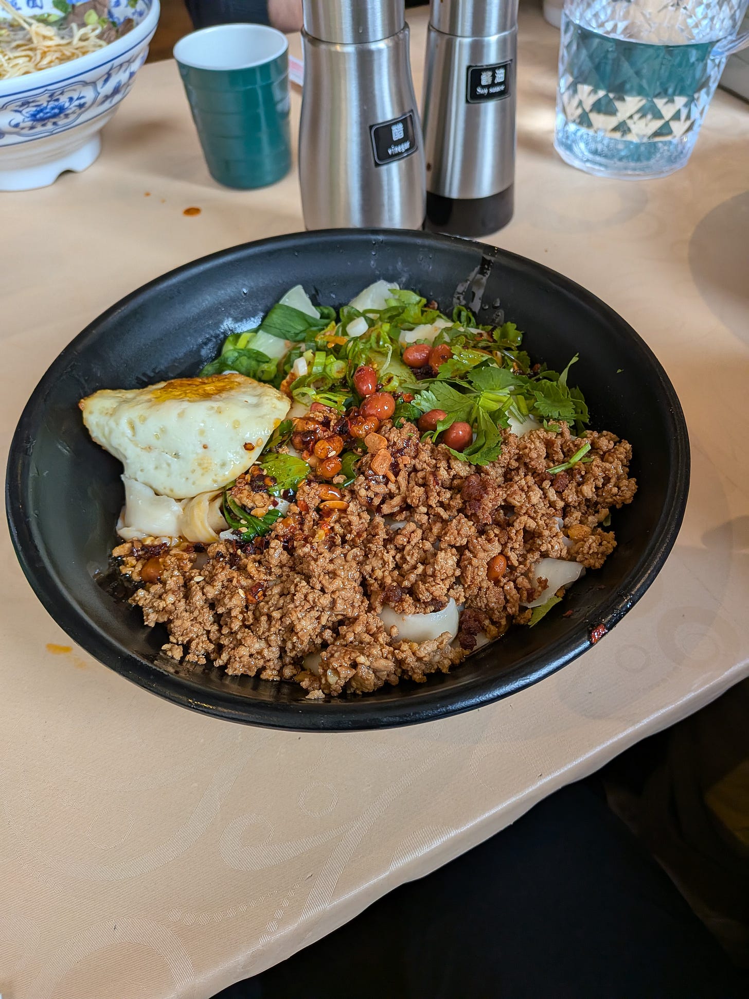 Often, the status of ‘favourite restaurant’ conveys something quite specific: reliability, the comfort taken in knowing exactly what you’re going to order and what you’re going to get. Noodles Home, which specialises in Lanzhou and Sichuanese noodles, is not that. Its gift is being consistent in its inconsistency: that the same dish at different times, or even ordered by multiple people on the same occasion, will take wildly different forms. Take my go-to, the Chongqing spicy noodles with pork mince. You can go 20 times (and, categorically, I have) and never know the broth-to-noodle ratio, the spice level, or how your choice of protein will be prepared and presented. But never being the same twice, often not even close, just means the kitchen has found multiple paths to paradise. SY